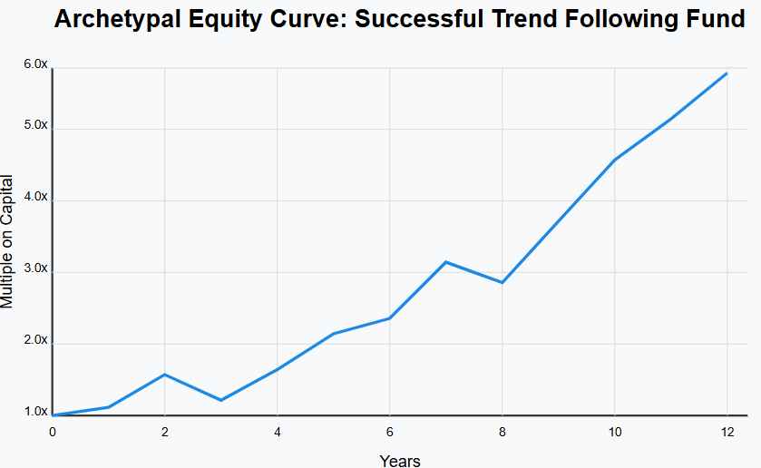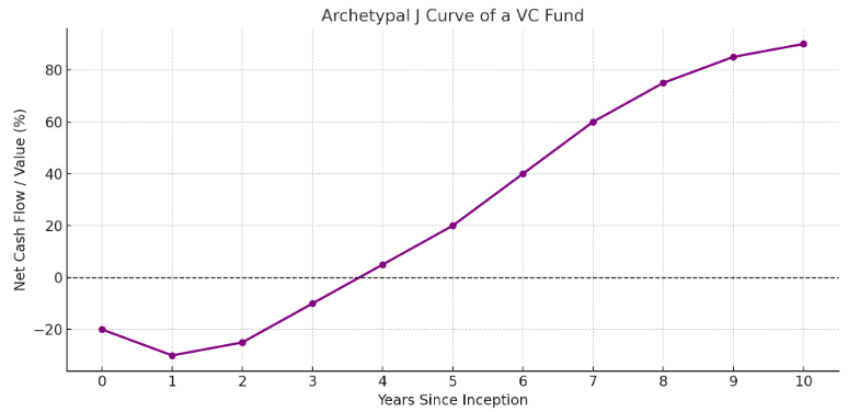 Their equity curves will usually show long periods of drawdowns before being in the black. The best way to visualise this is to reference the J-Curve from the Venture Capitalists’ world. Capital is drawn down and committed in the early years of a fund’s charter life, and investment gains are realised only much later if the overall operation is successful.
